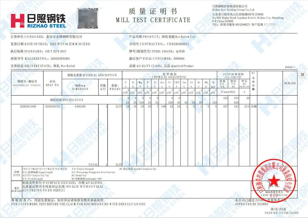 | Grade | Q355 |